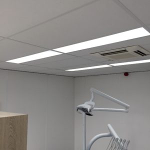 Full Spectrum daylight 120 cm x 30 cm LED Panels for dental treatment rooms with suspended ceilings.